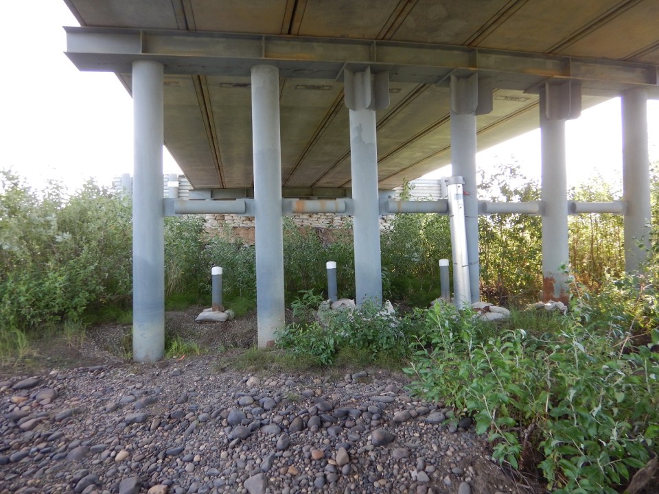 The bridge is built on piles – steel pipes embedded in holes drilled into the ground. Piles usually sit on bedrock where it is accessible, Hoeve said, but along the ITH, they depend on the strength of the permafrost.