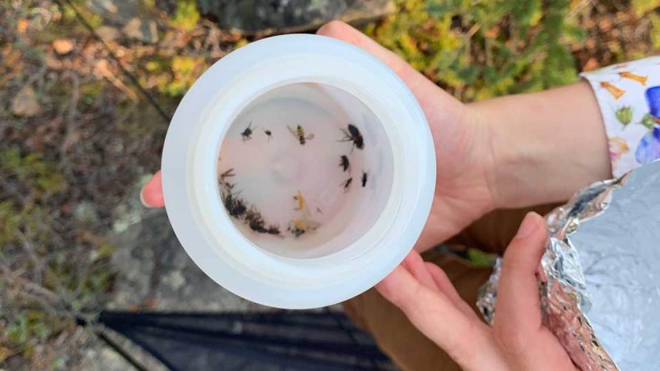 “It’s a delicious soup in there,” said Meinert of the malaise trap. The DNA of the insects caught in this trap is sent to Guelph, Ontario for analysis.