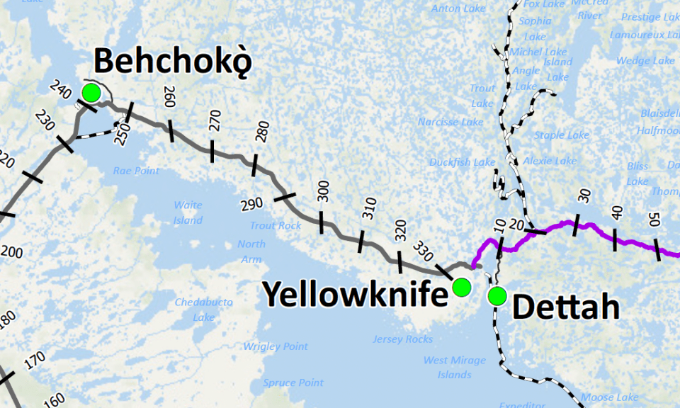 The notice from the Department of Environment and Climate Change is specific to homes and cabins between km 260 and 300 of Highway 3, a stretch extending from just east of Behchokǫ̀ to roughly the midpoint of the road between Behchokǫ̀ and Yellowknife.