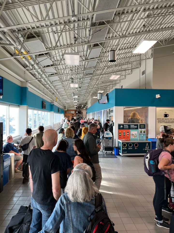 10:05 – Yellowknife Airport is extremely busy, I’m told, with long lines at most counters and at security. If you’re going, go early.