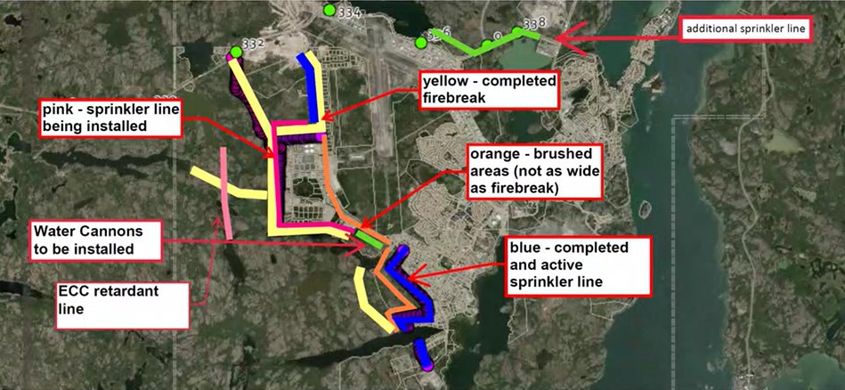 An old fire guard has also been reestablished “from west 40 at Highway 5 east of Fort Smith and has now been connected to the airport to aid in community protection.”