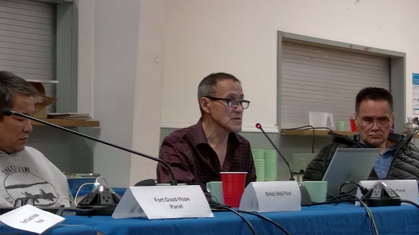 The listening session featured presentations by Norman Wells, Tulita, Délı̨nę, Colville Lake, Fort Good Hope, the Tłı̨chǫ Government, NWT government, and Environment and Climate Change Canada.