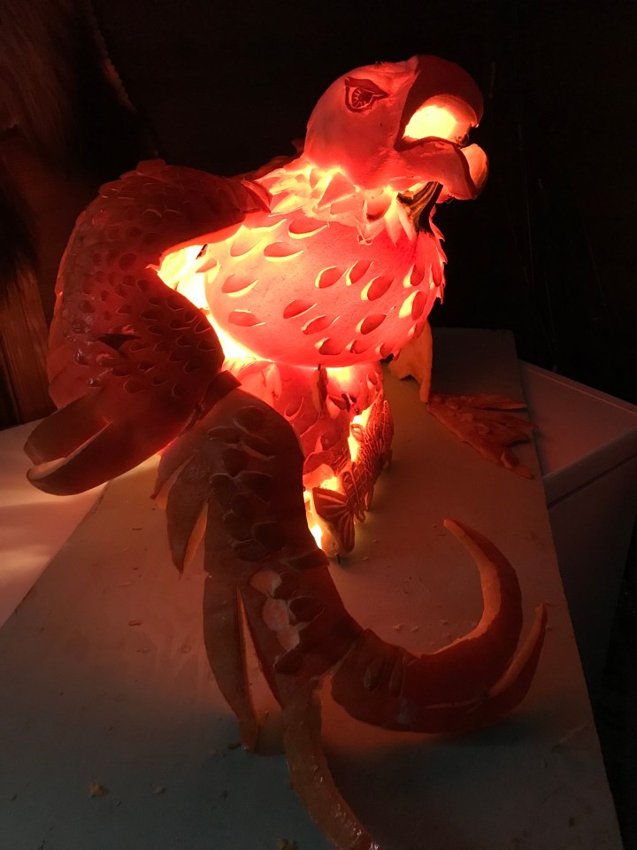 This year’s edition was a werewolf made from six large pumpkins.