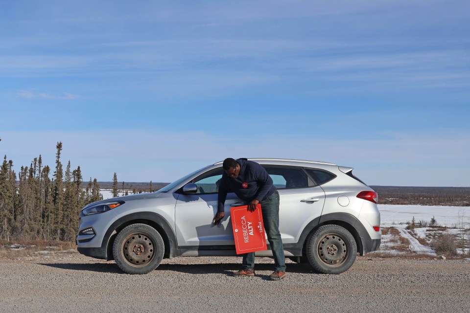 On Tuesday, she travelled to Whatì to hang posters, speak with local officials and go door-knocking.