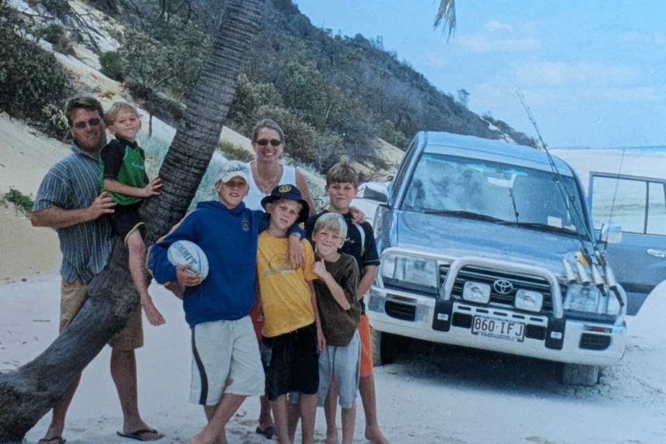 Tom with his parents and brothers on Fraser Island. Photo: Submitted