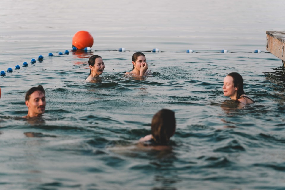 Treading water before heading back to the sauna. Sarah Pruys/Cabin Radio