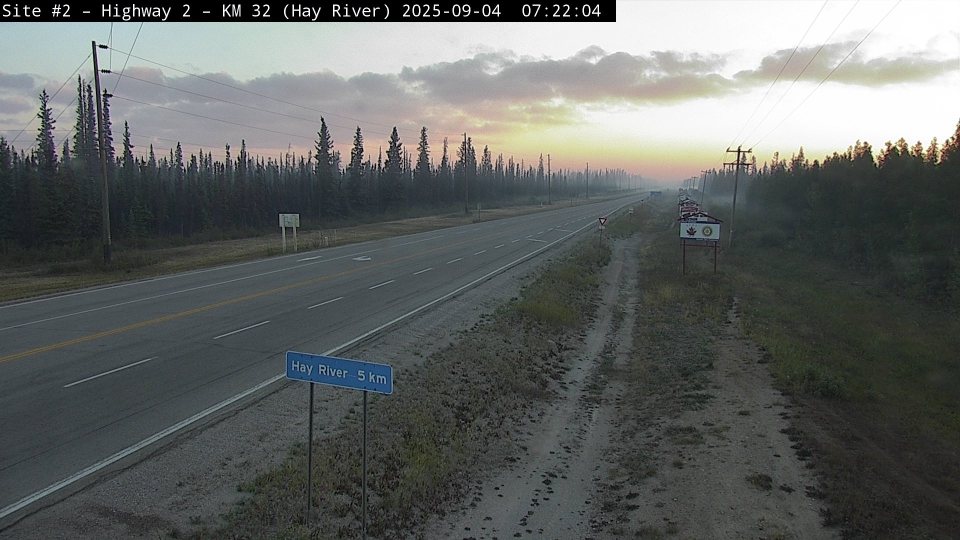 Here’s the scene looking toward Hay River this morning from the Drive NWT camera on Highway 2: