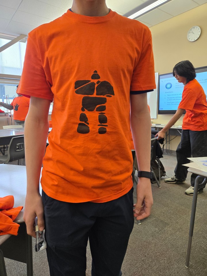 That’s a line eighth-grader Sidney Selamio added to an orange shirt she decorated, one of roughly 200 created by high schoolers from Inuvik’s East Three Secondary School for the National Day for Truth and Reconciliation.