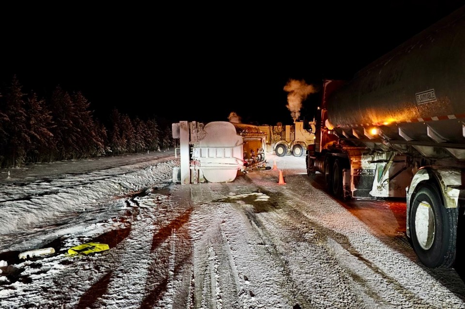 According to a report made to the NWT’s spill line on Monday evening, the vehicle tipped on its side shortly after 8pm on the highway southeast of Kakisa.