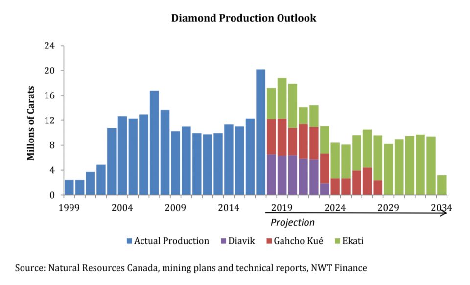 However, significantly increasing the NWT’s revenues will be tough. Royalties from mining, oil, and gas were forecast to hit $43 million in 2017-18; instead, they came in at $31 million and are now estimated to reach just $13 million in 2018-19. That’s despite the territory producing and shipping more diamonds last year than ever before, by the GNWT’s own estimates.