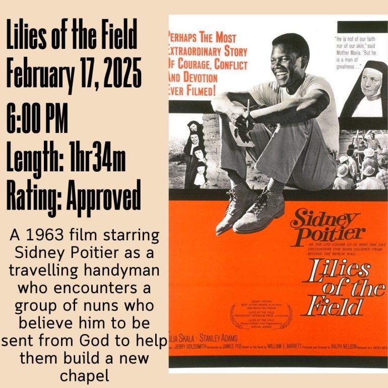Lilies of the Field is a 1963 American comedy-drama starring Sidney Poitier as a travelling handyman who encounters a group of nuns who believe him to be sent from God to help them build a new chapel.
